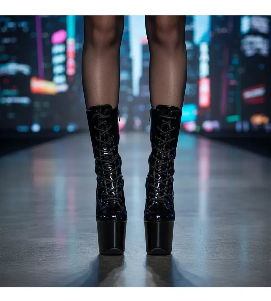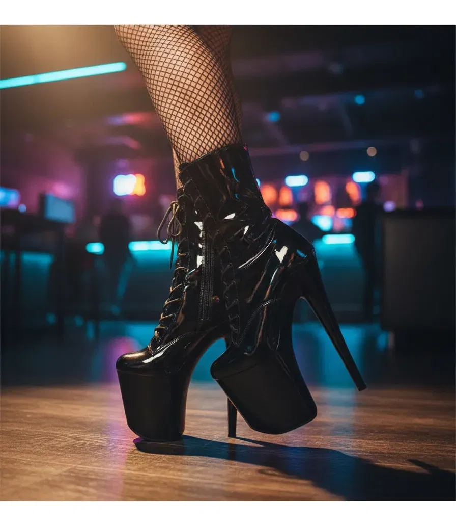Plataforma robusta y rectangular que compensa la inclinación del tacón