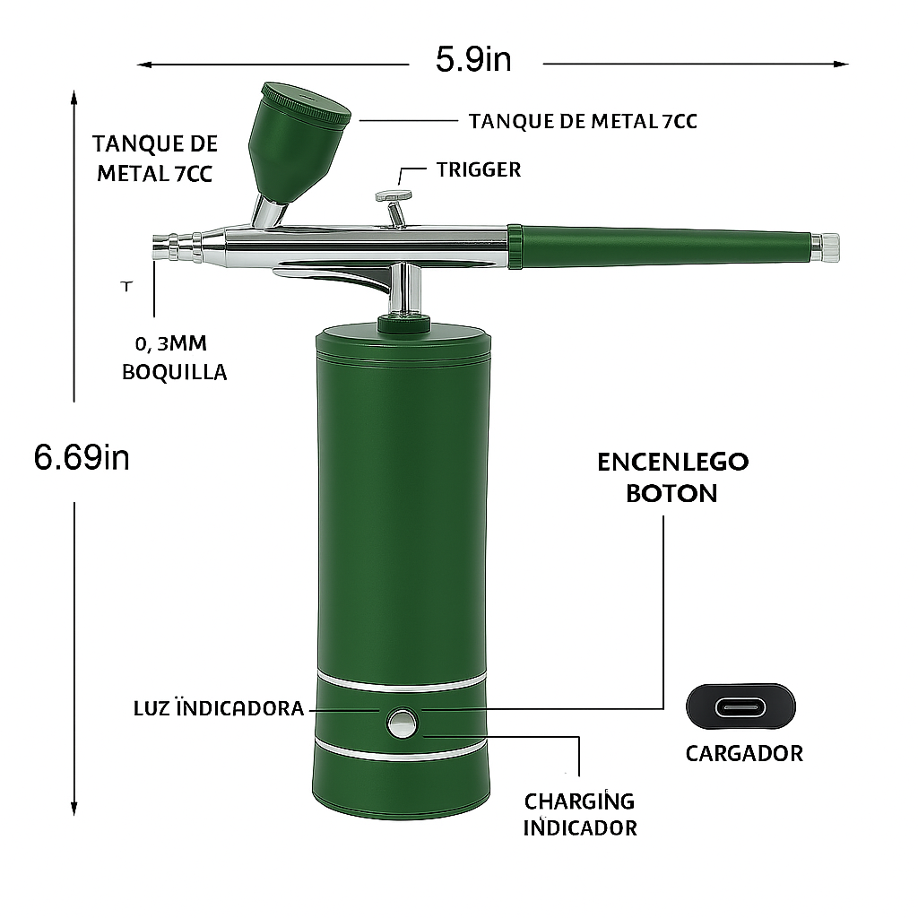 ✨ Características Técnicas del Aerógrafo Portátil