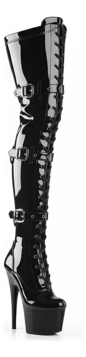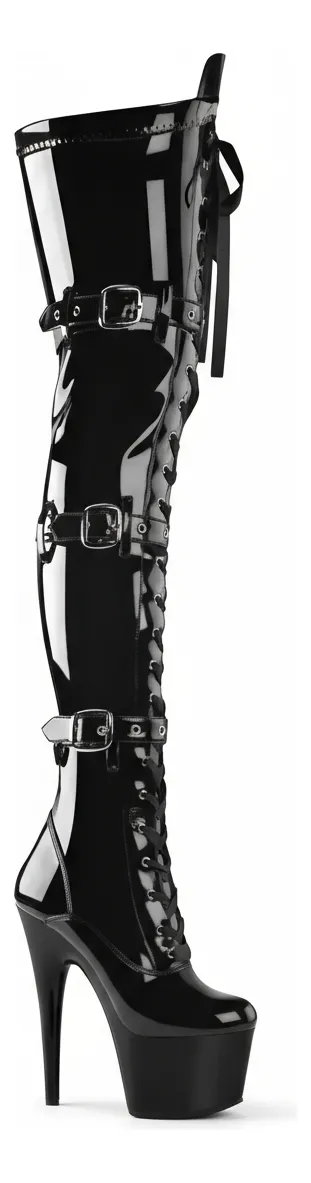 - Cordones frontales (estilo corset): A lo largo de casi toda la bota, de la base al muslo.