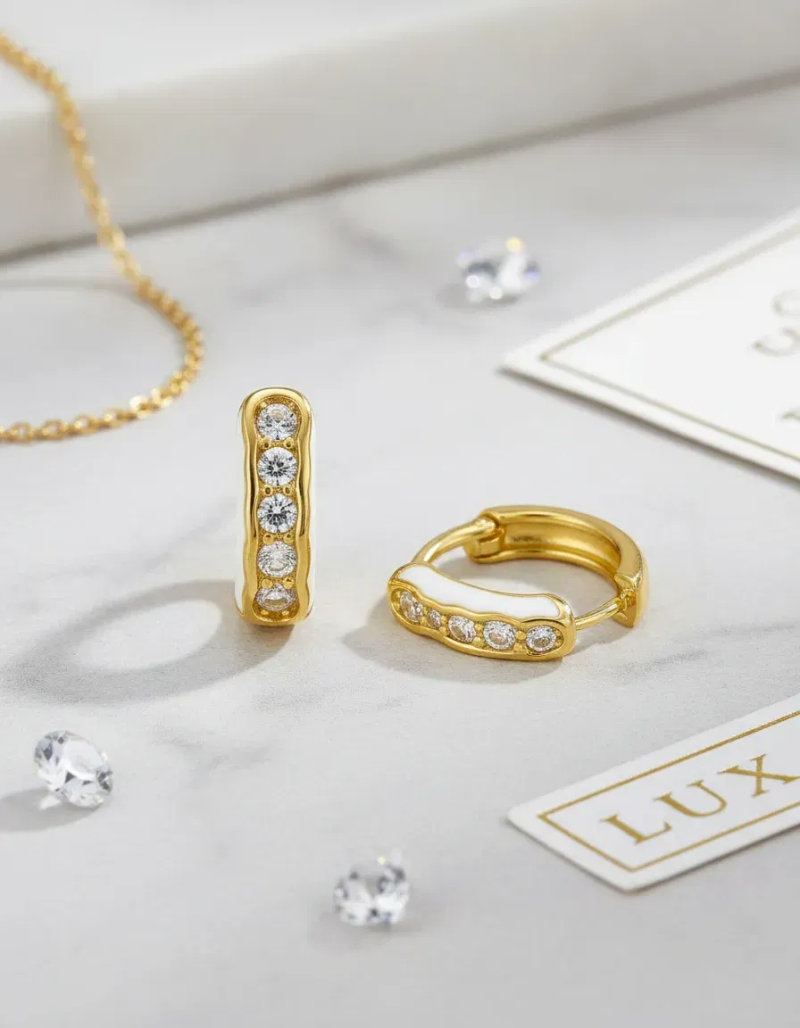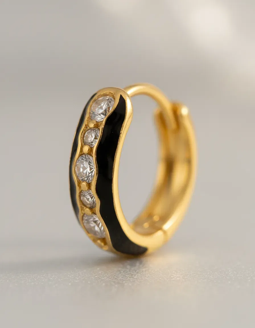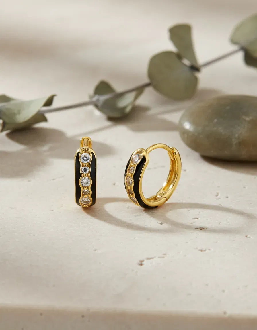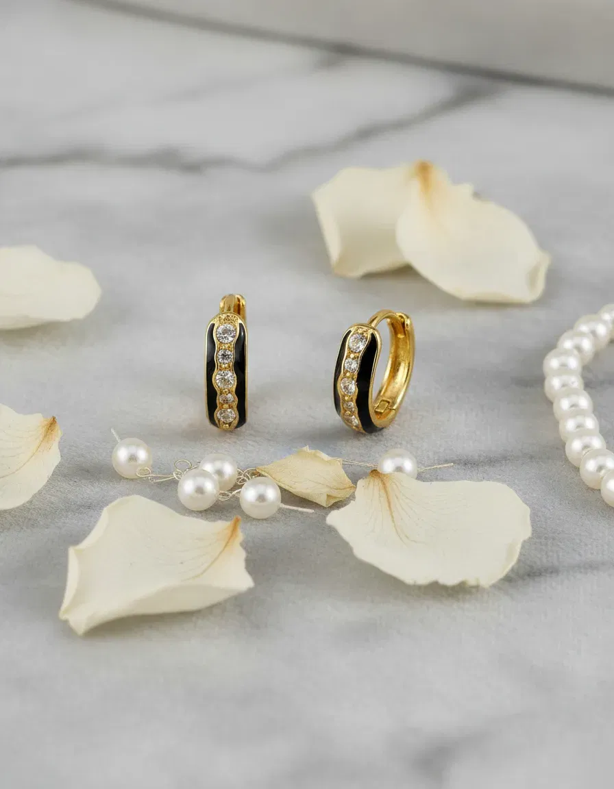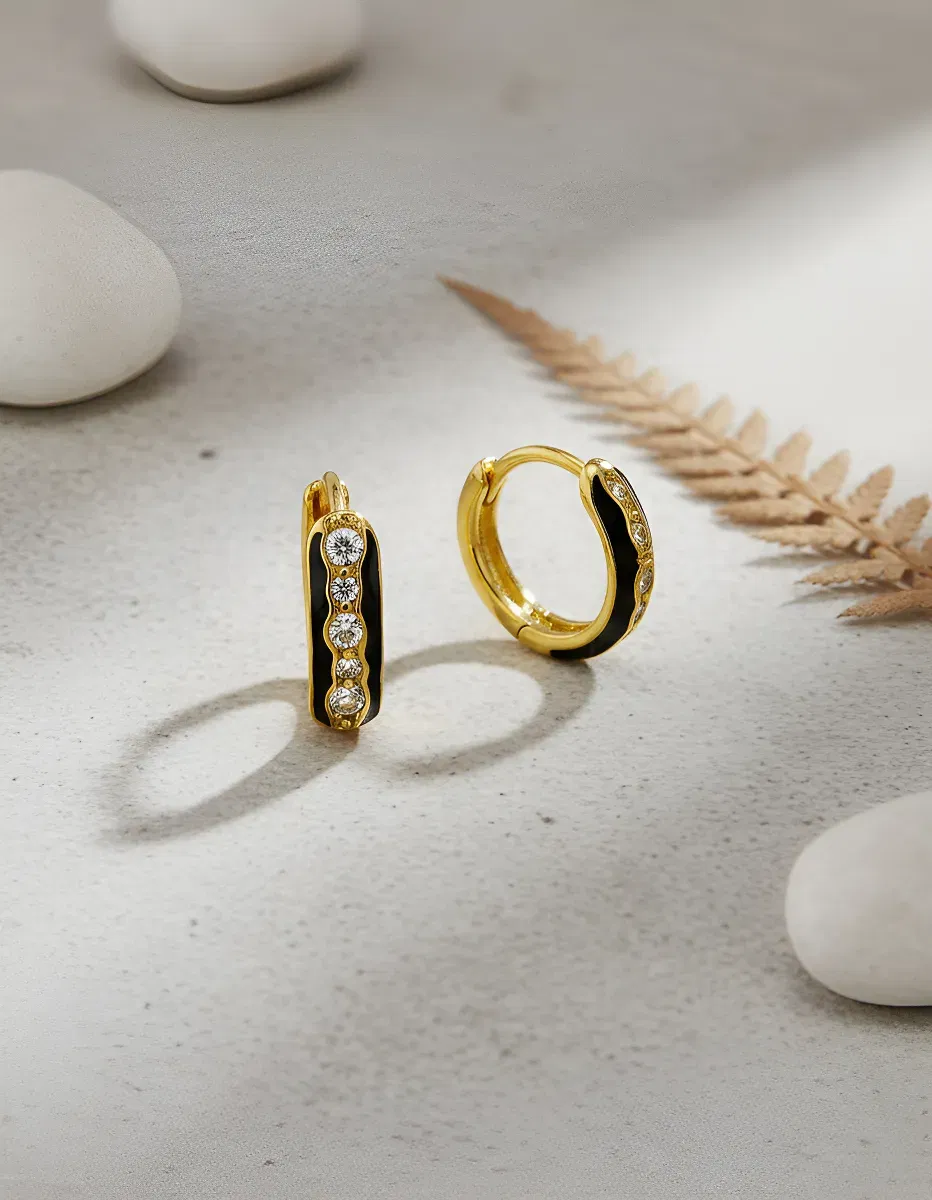 ⚜️ Acabado de lujo: Bañadas en oro 18K, con opción en esmalte liso dorado o esmaltado negro para un look moderno y glam.