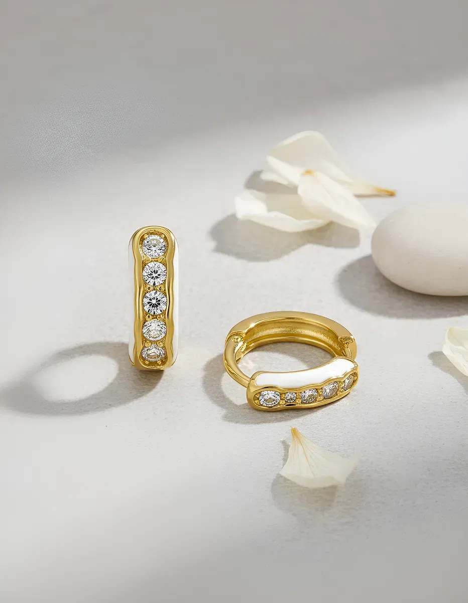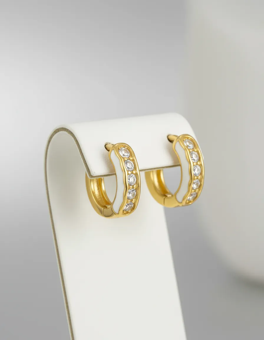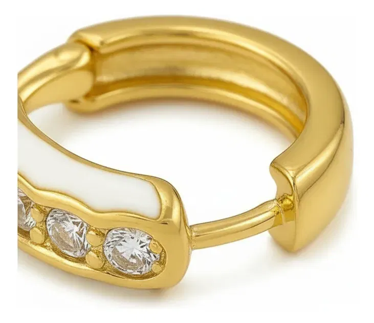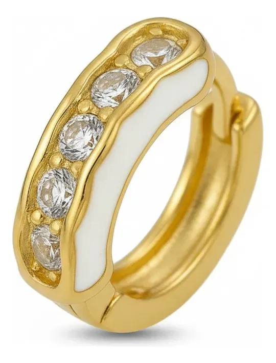 Aros Argolla Oro 18K Acero Quirúrgico con Piedras Circonia – Cierre Bisagra