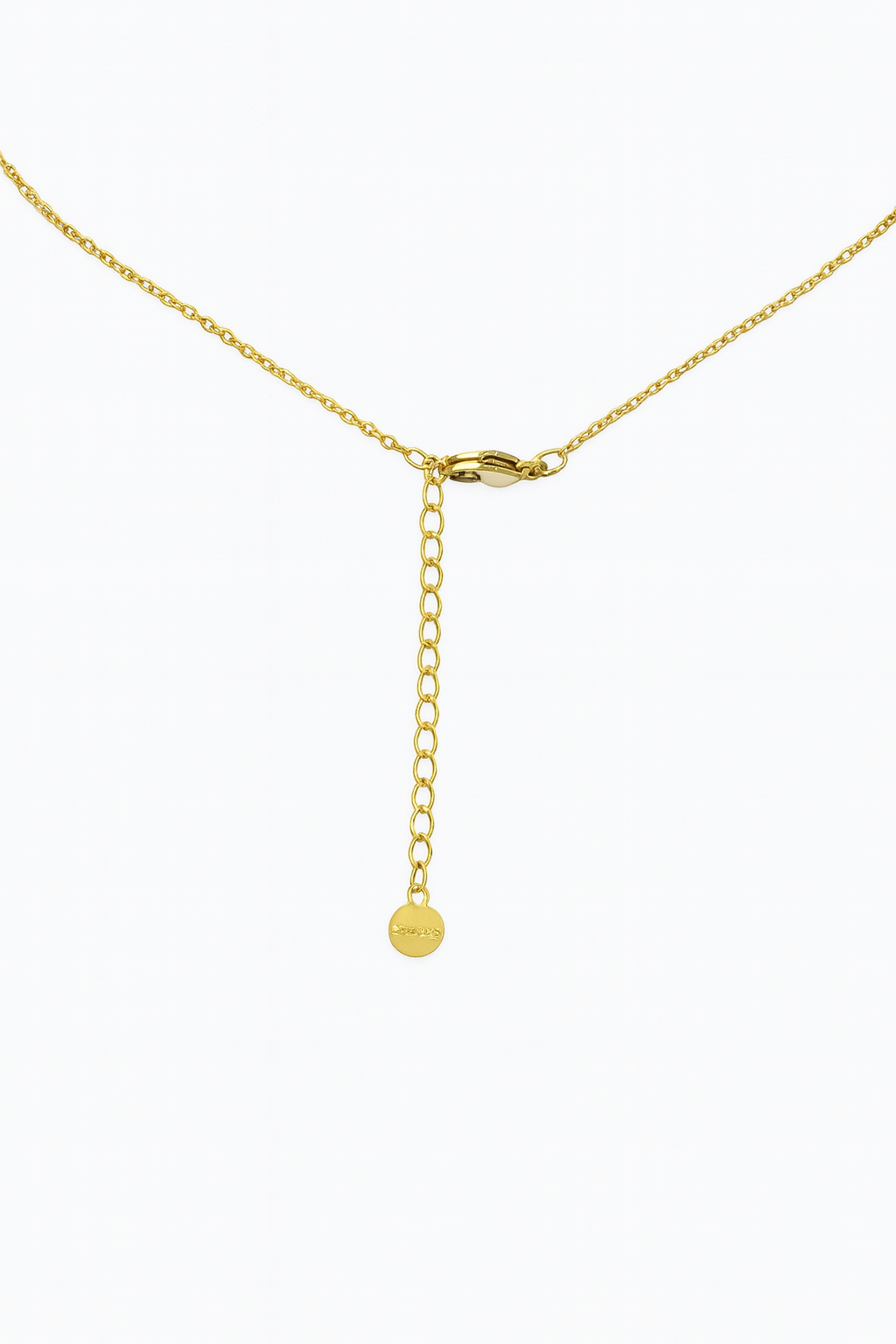 Collar delicado y sofisticado elaborado en acero quirúrgico hipoalergénico, con baño en oro 18K que realza su brillo y durabilidad.
