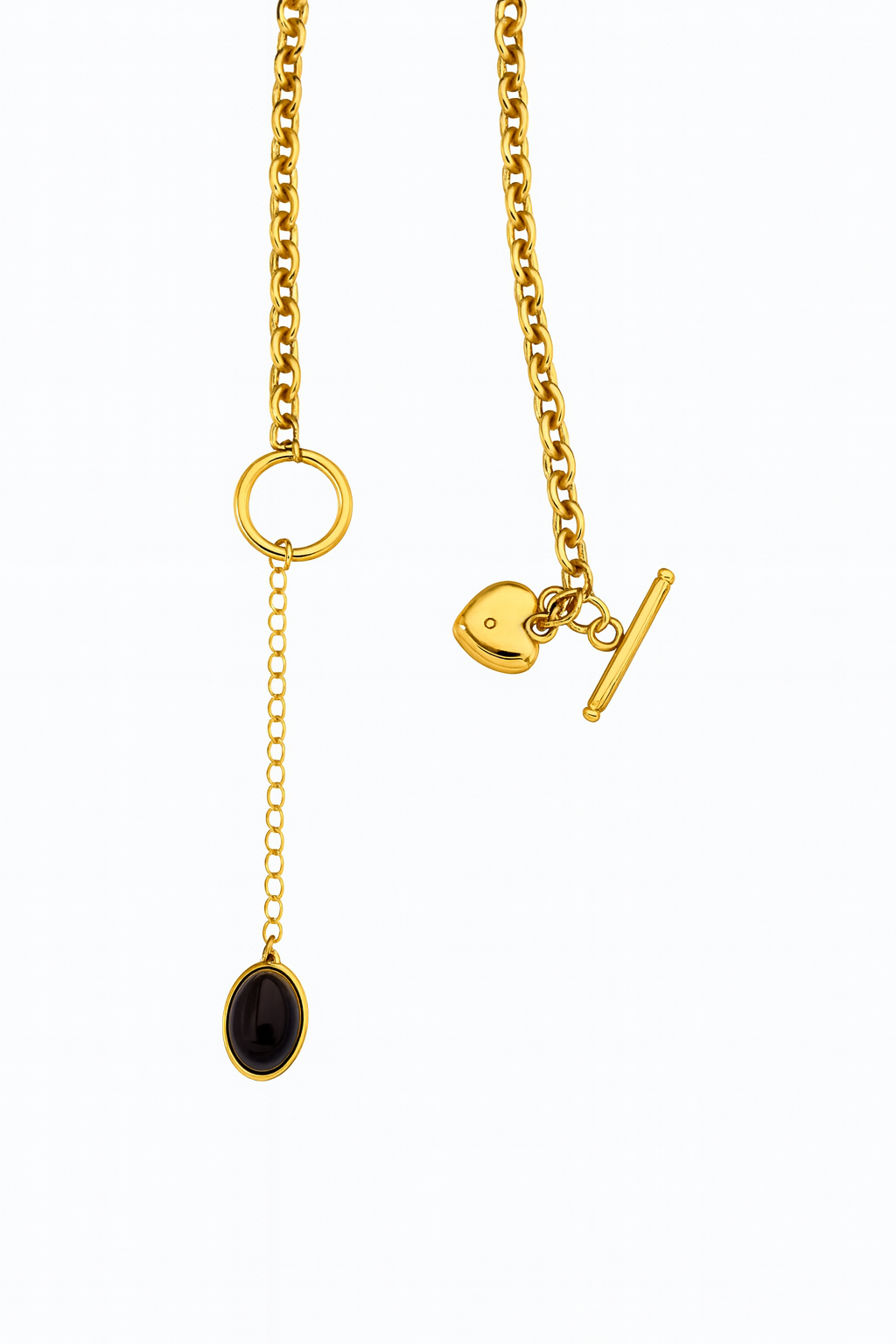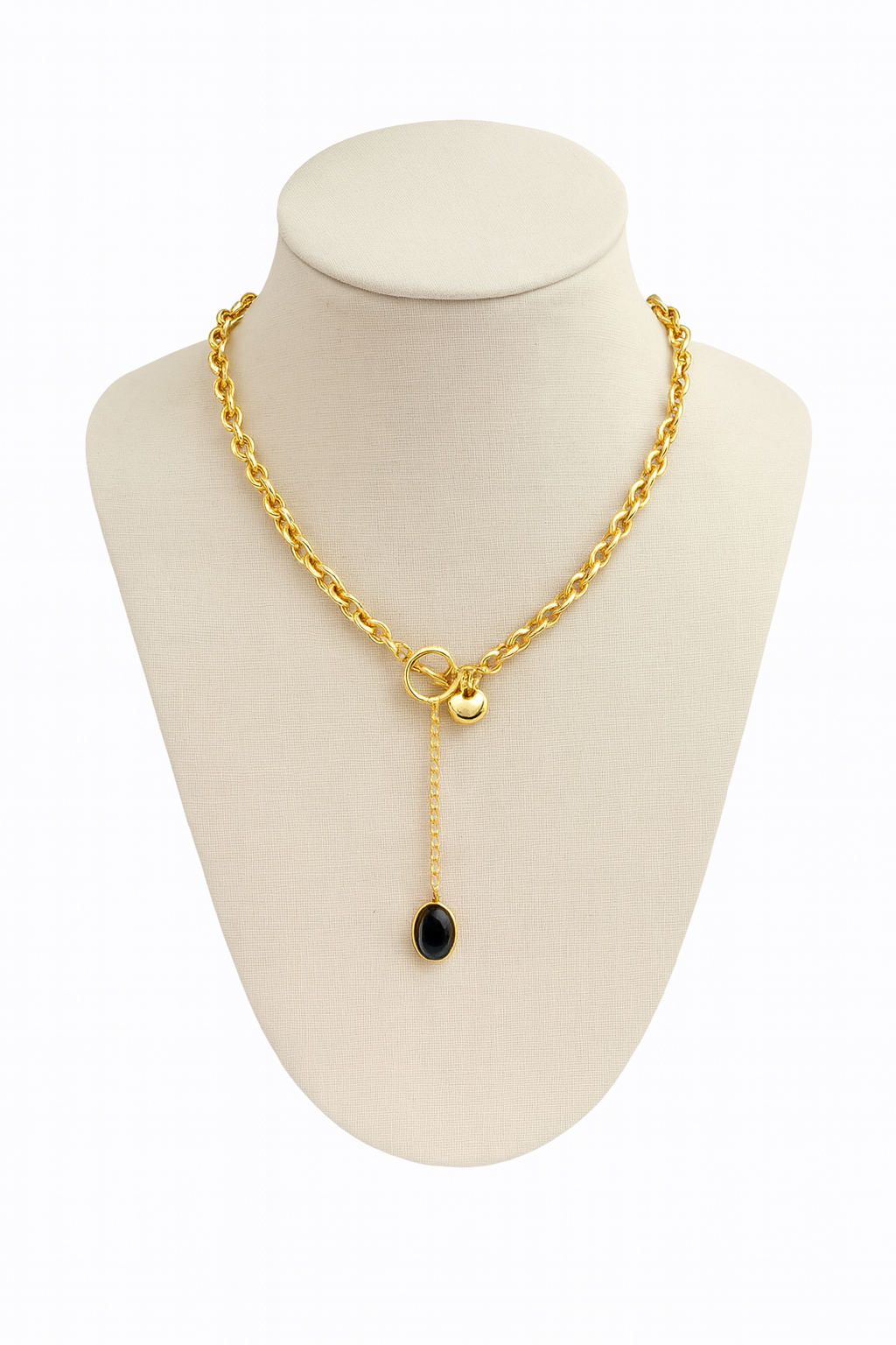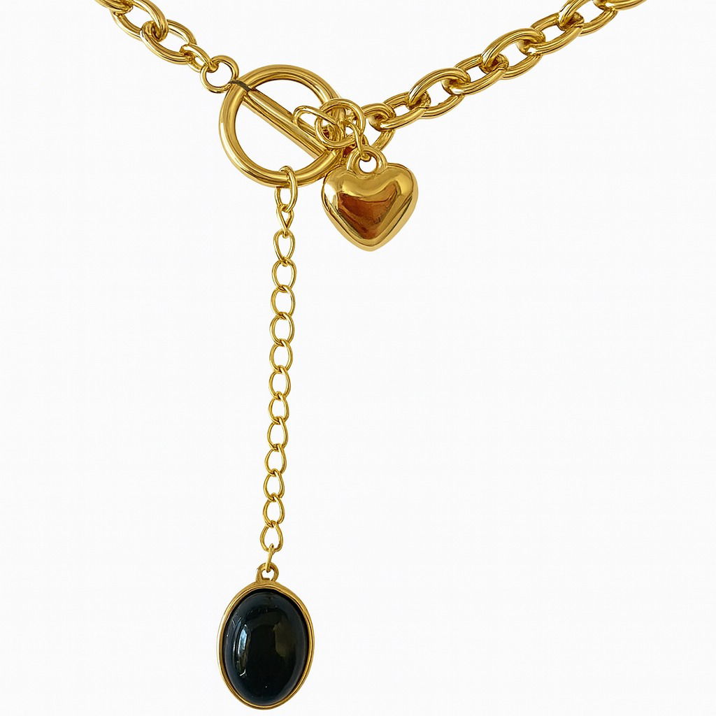 Un diseño moderno y elegante que combina lo clásico del oro con la sobriedad de la piedra negra. Ideal para usar en ocasiones especiales, cenas, eventos formales o como pieza protagonista en un outfit casual con estilo.