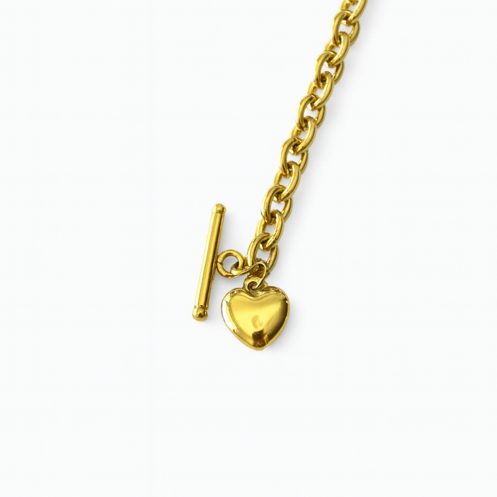 Incluye un delicado dije en forma de corazón junto al cierre, aportando un detalle femenino y romántico.