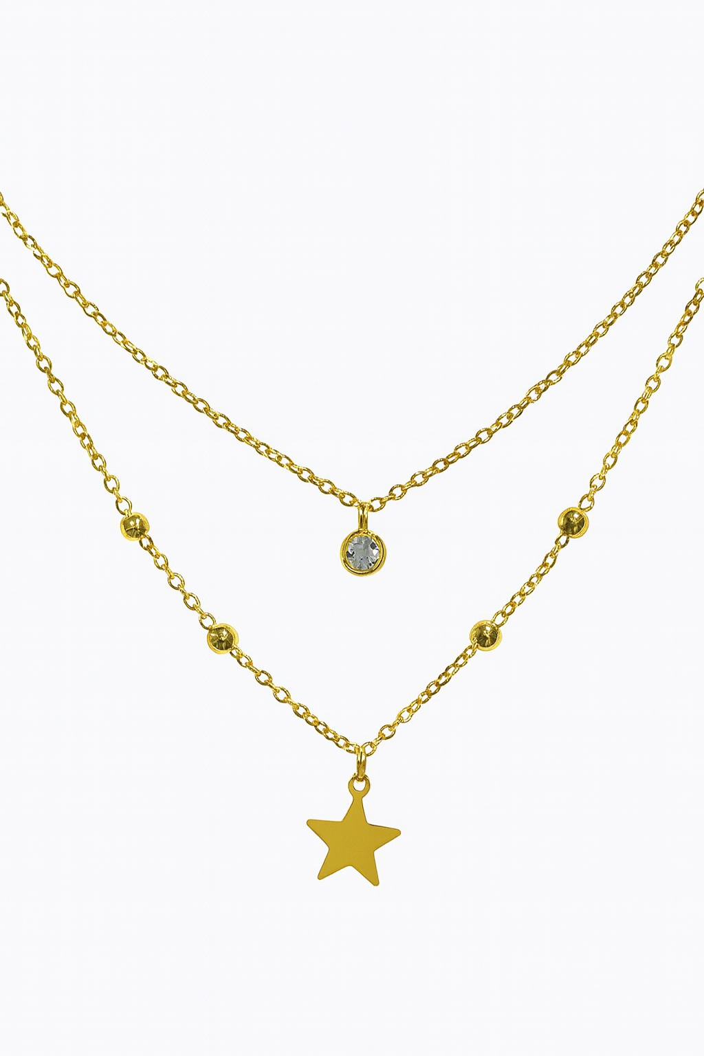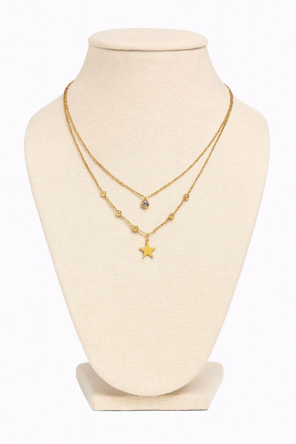 Elegante y delicado collar doble ideal para realzar cualquier look, desde el día a día hasta ocasiones especiales. Su diseño en capas aporta un estilo moderno, femenino y sofisticado.