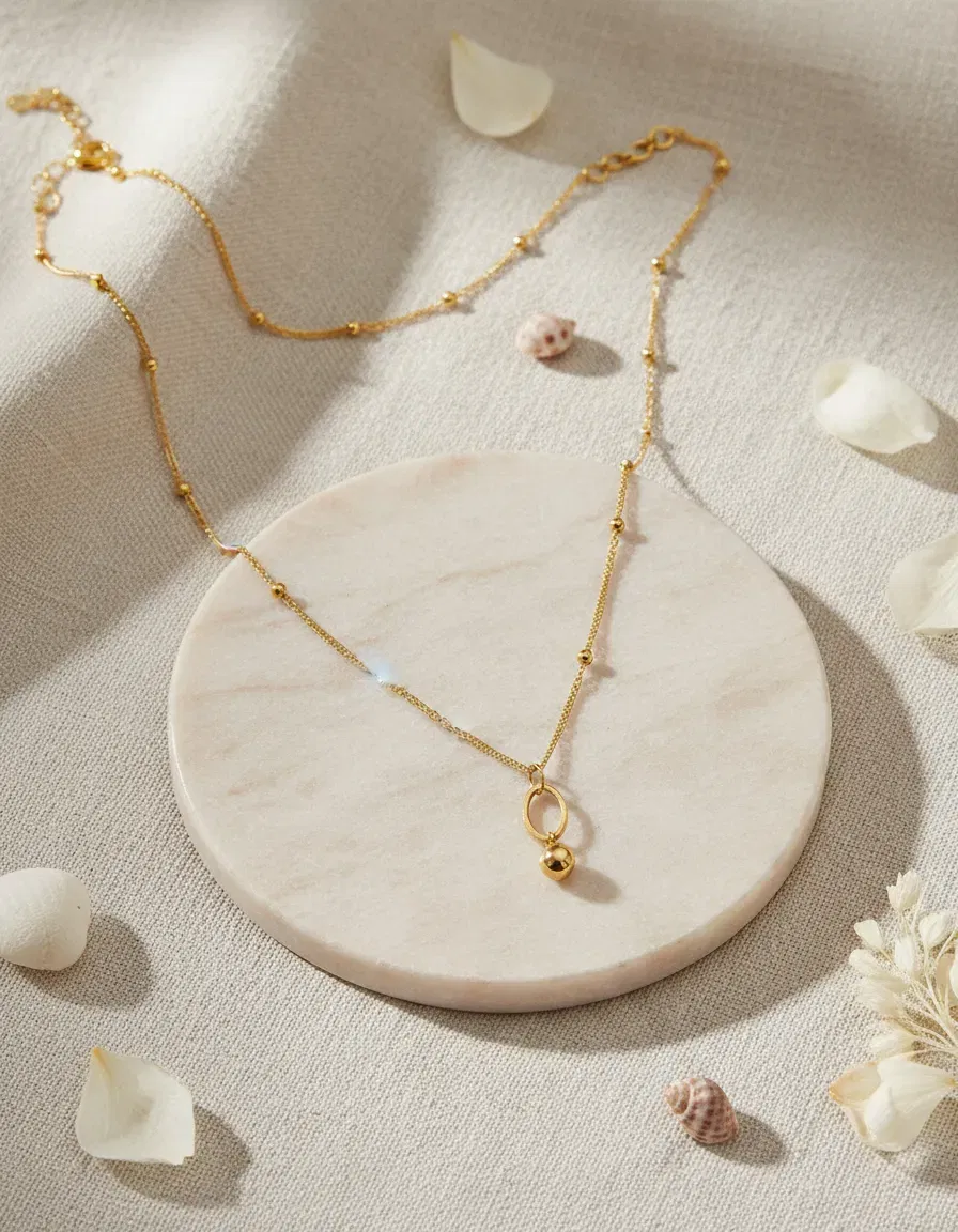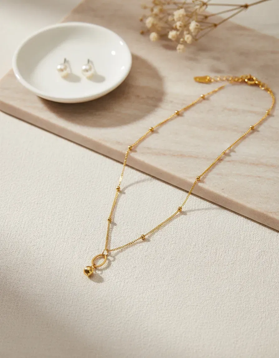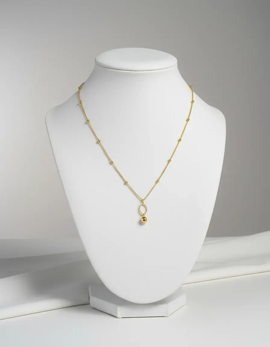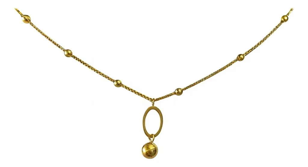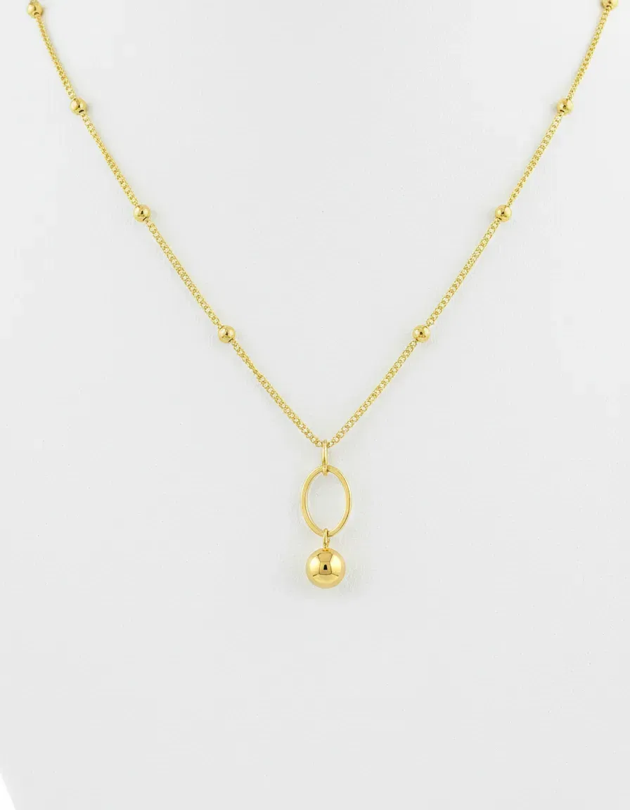 🌟 Cadena Fina con Dije Ovalado y Esfera Dorada 🌟
