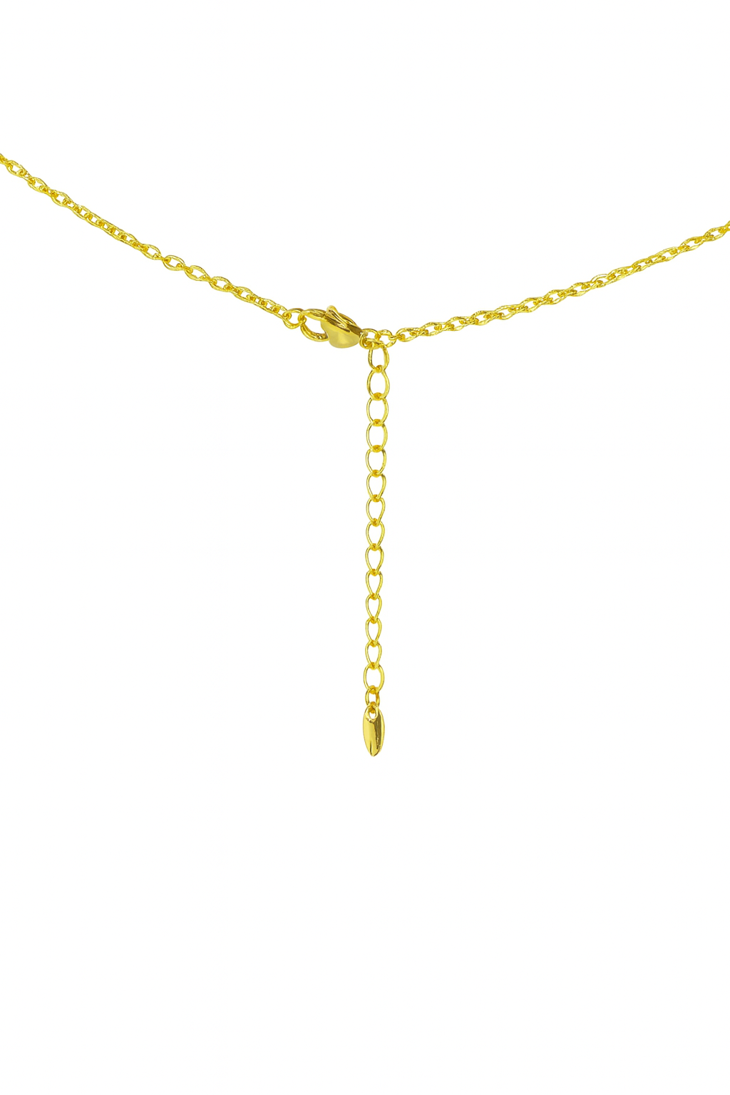 Elegante collar elaborado en acero quirúrgico hipoalergénico, resistente y duradero, con un refinado baño de oro 18K que garantiza brillo y sofisticación.