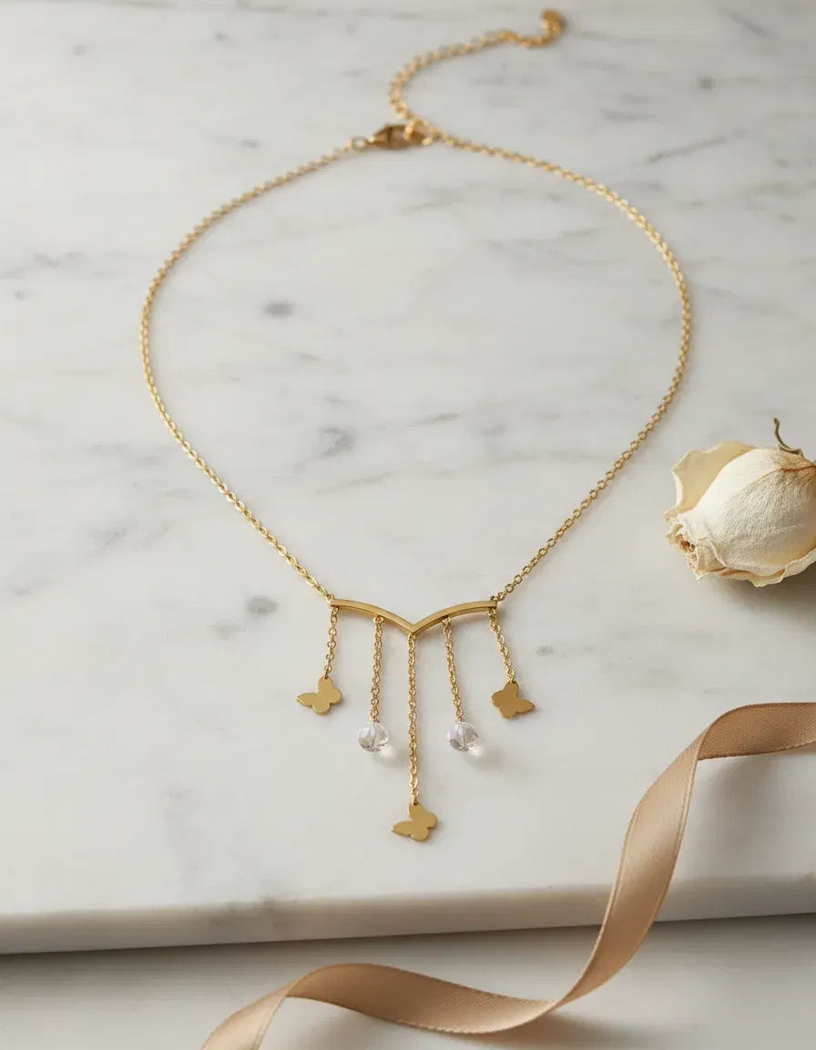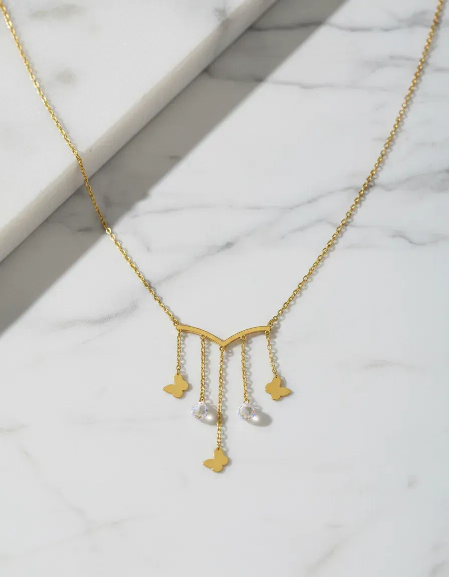 🦋 Con dijes de mariposa y piedras circonias brillantes