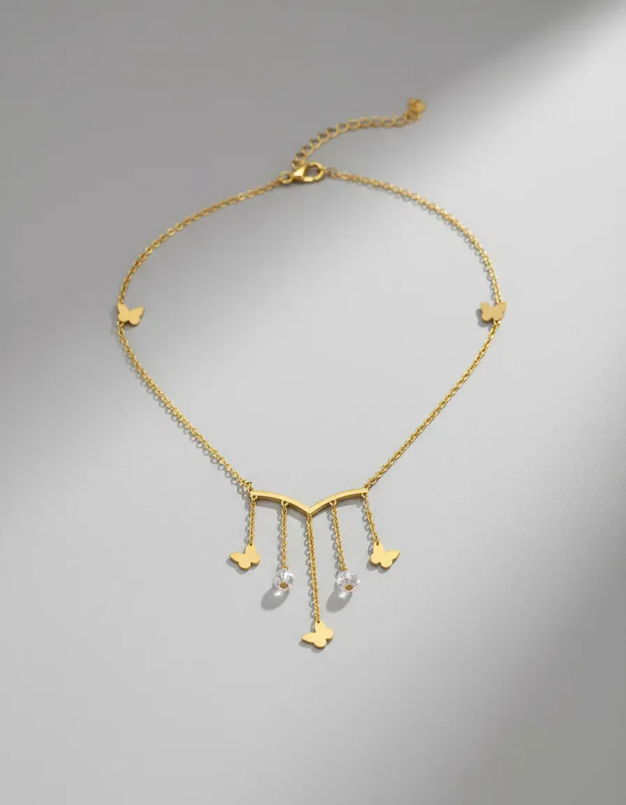 Colgantes: Dijes de mariposa delicados + piedras circonias facetadas de alto brillo.