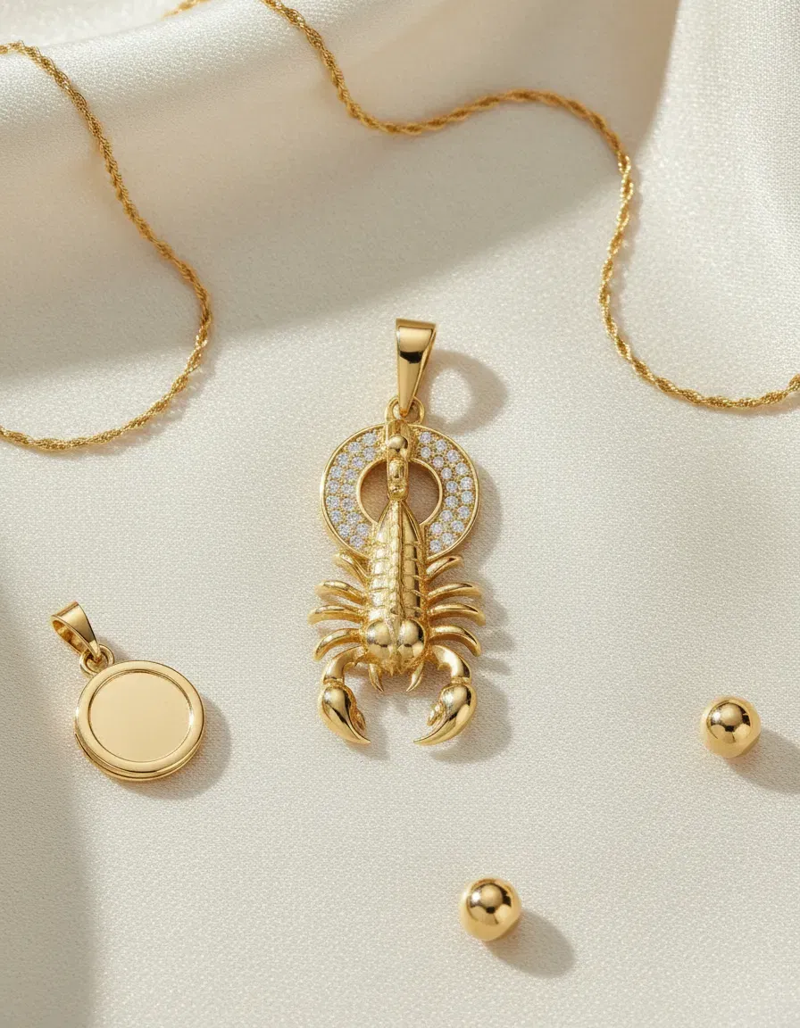 🔱 Dije Escorpión Dorado con Circonias ✨