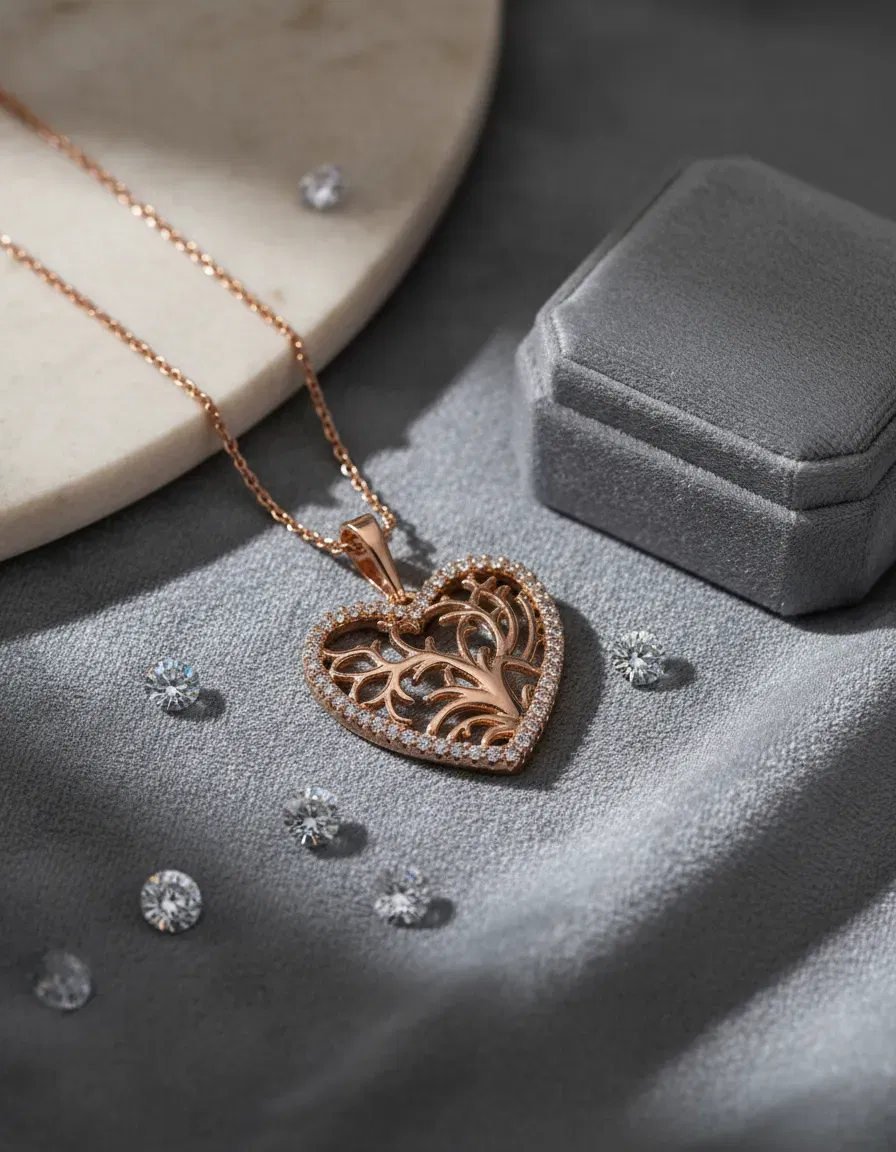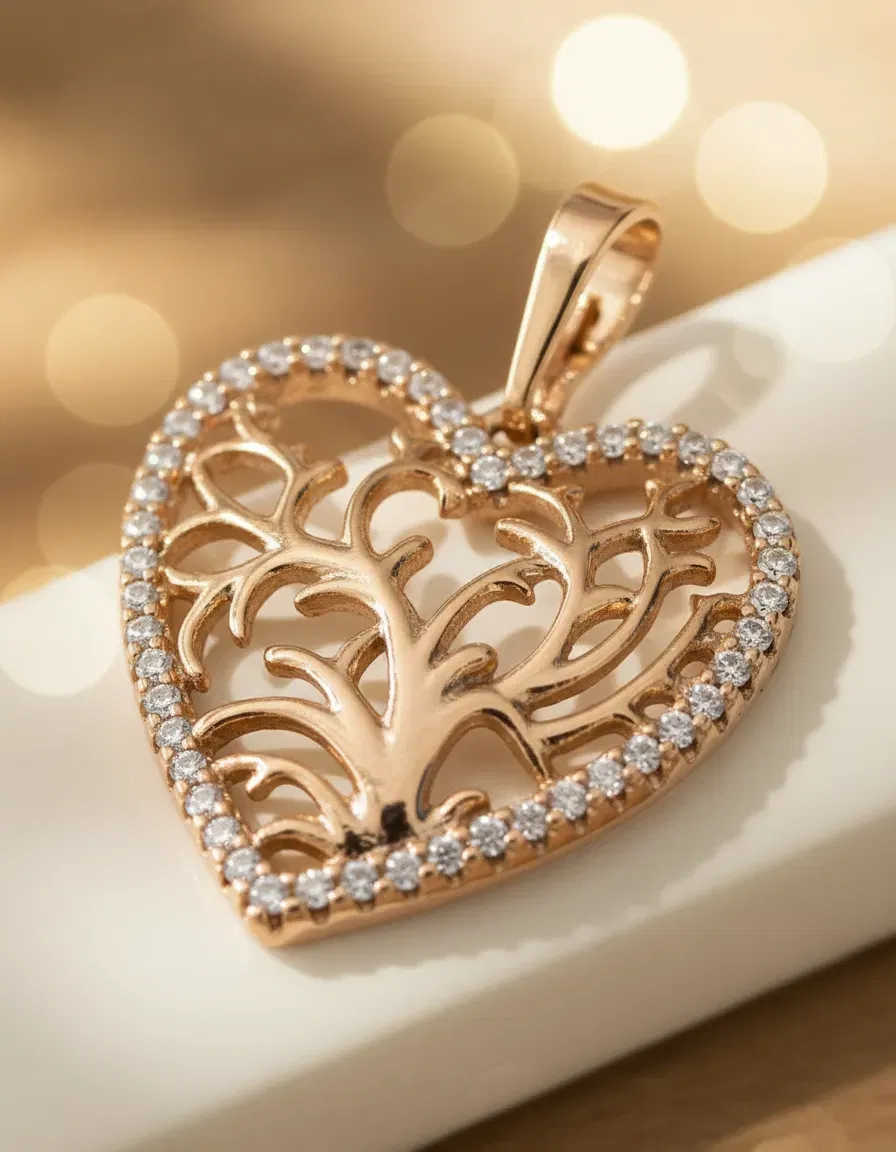 🌟 Diseño exclusivo: dije en forma de corazón con delicado árbol de la vida calado en el centro.