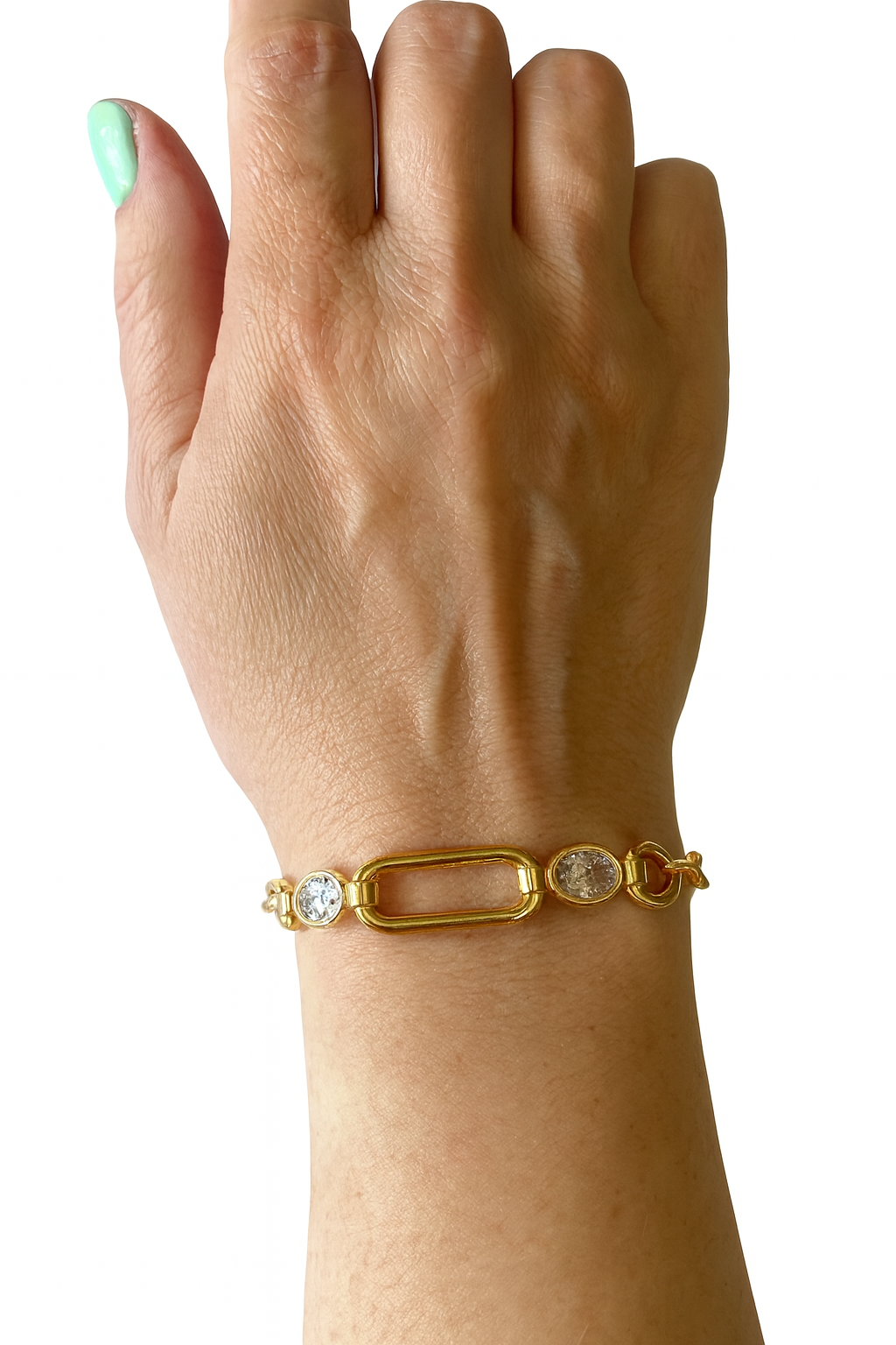 ✔ Diseño: Cadena de eslabones finos combinada con detalles centrales geométricos y circonias blancas engarzadas, que aportan brillo y sofisticación.