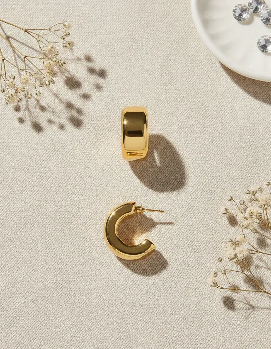 💬 Perfectos para elevar cualquier look, estos aros tipo argolla con diseño grueso y pulido espejo son ideales para el uso diario o una salida especial. No se oxidan, no se oscurecen y son resistentes al agua. ¡Una joya que combina con todo! 💖