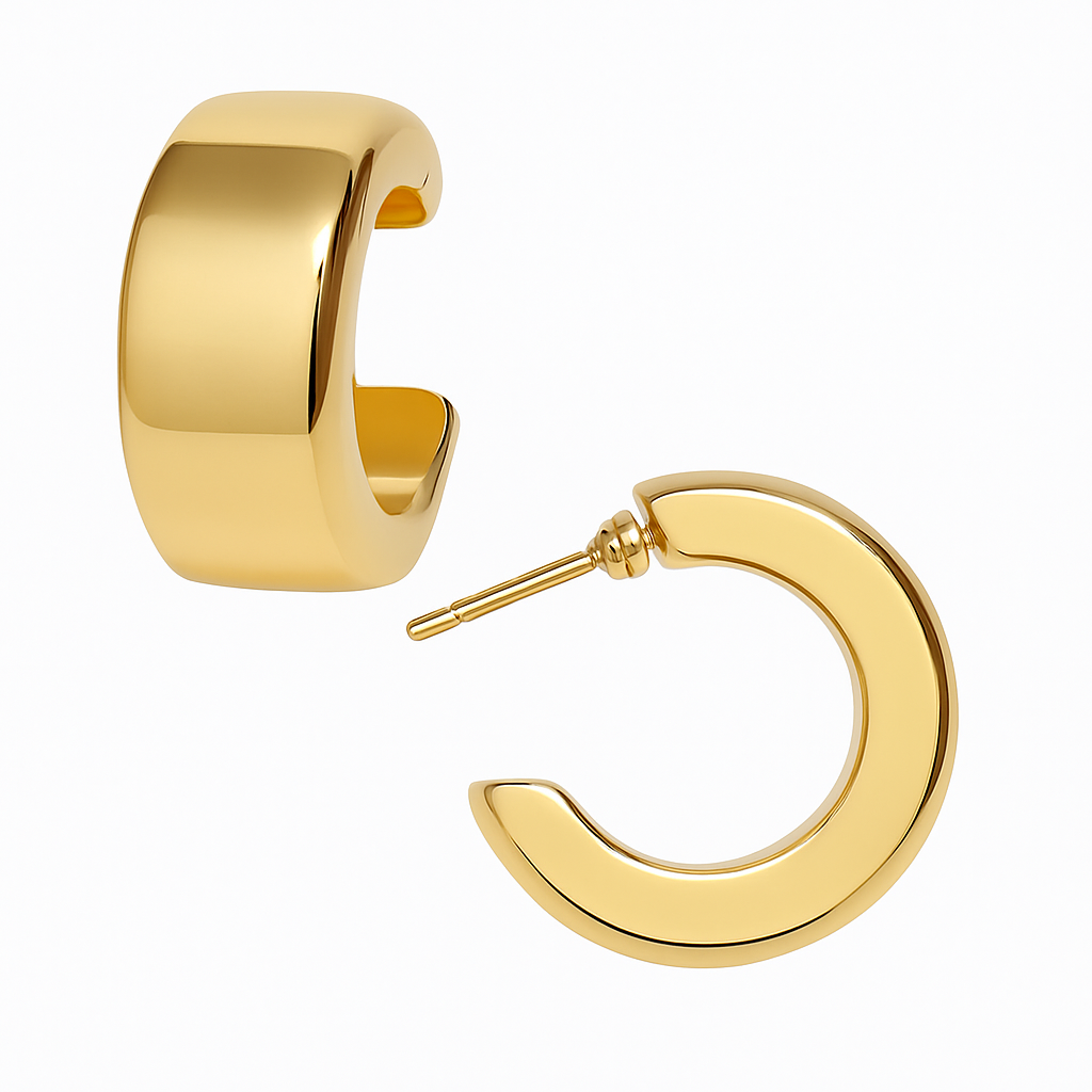 💬 Perfectos para elevar cualquier look, estos aros tipo argolla con diseño grueso y pulido espejo son ideales para el uso diario o una salida especial. No se oxidan, no se oscurecen y son resistentes al agua. ¡Una joya que combina con todo! 💖