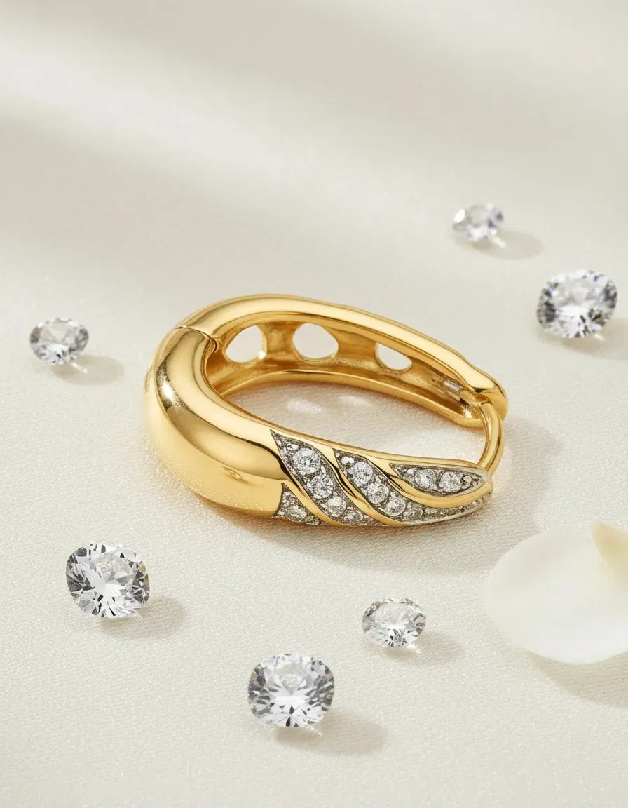 ✨ ARO DE ACERO QUIRÚRGICO BAÑADO EN ORO 18K CON CIRCONITAS ✨