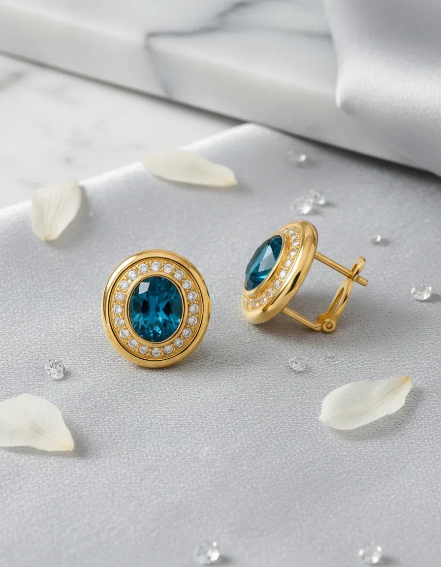 El tono dorado del metal realza la belleza de las piedras y añade un aire de lujo moderno, perfecto tanto para el día como para la noche. Ligeros y cómodos, estos aros son una elección ideal para completar cualquier look con un toque de distinción.