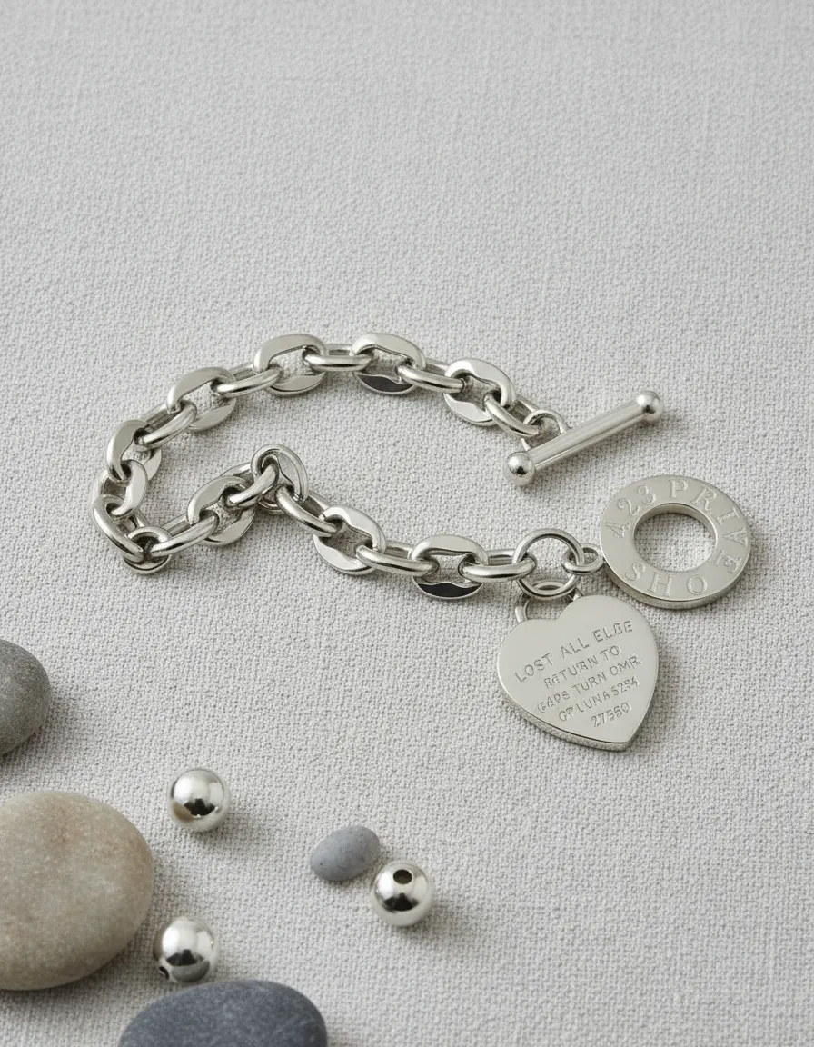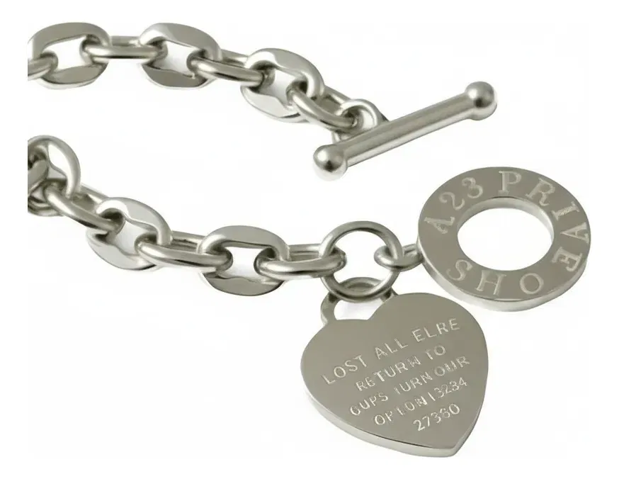 ✔ Charm corazón: 2 cm de ancho x 2 cm de alto aprox., con grabado estilo placa identificatoria.