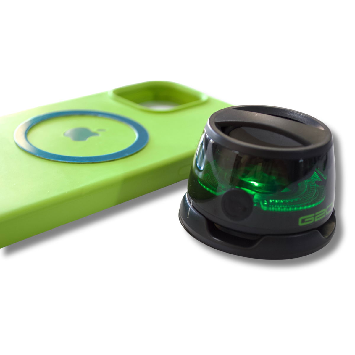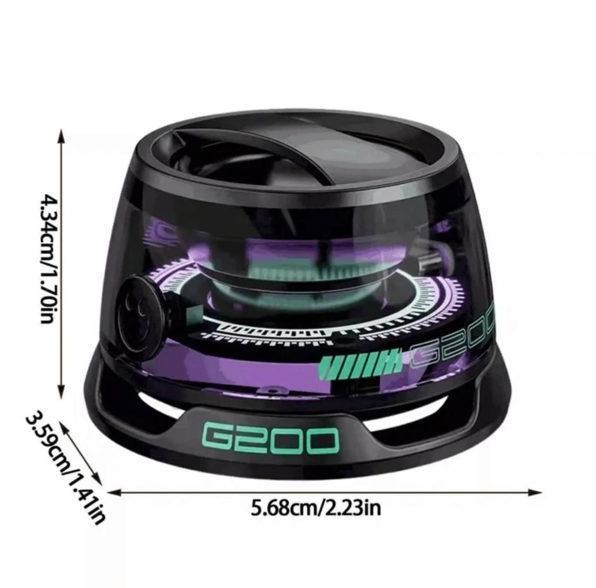 Este mini parlante G200 combina diseño compacto con un sonido sorprendentemente potente. Su estructura moderna con luces LED integradas (💚💙) le da un toque gamer y divertido a cualquier espacio.