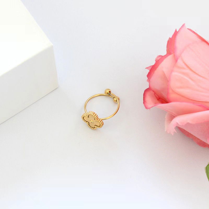 Anillo ajustable: destaca en la mano con un trébol (1 cm aprox.) central en relieve, ideal para uso diario o eventos especiales.