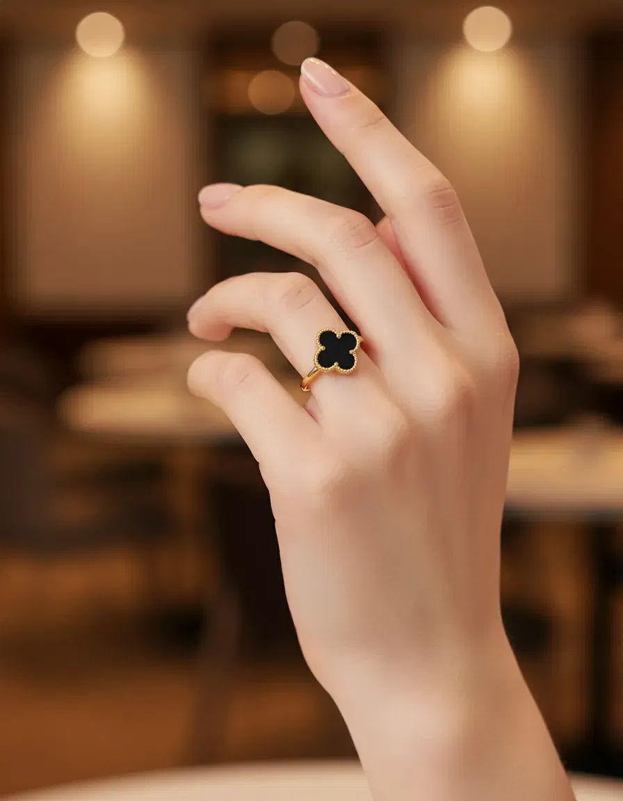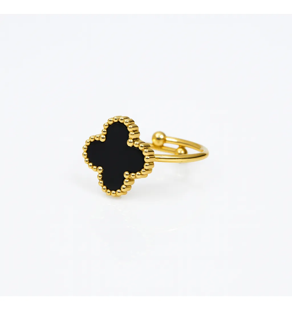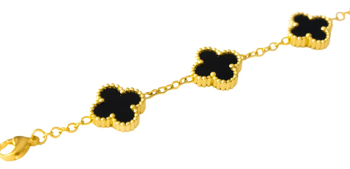 Diseño de trébol de 1,5 cm con bordes dorados.