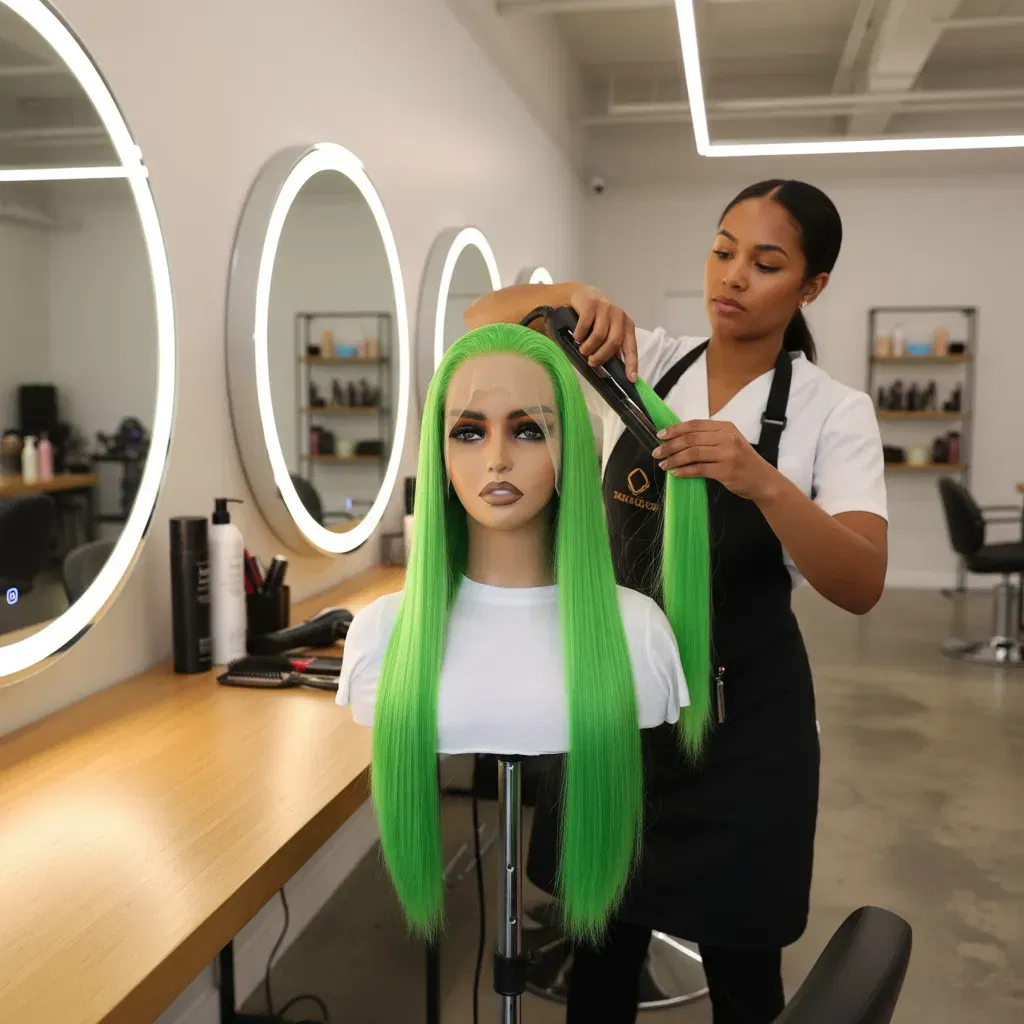 Secado: Deja secar al aire libre sobre un soporte para pelucas. Si es necesario usar un secador, opta por una temperatura media y asegúrate de que la peluca esté casi seca antes de aplicarlo.